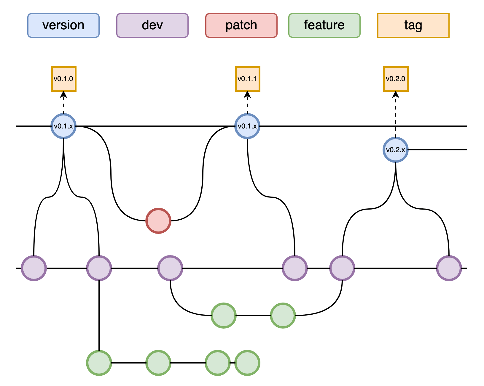 As such, all feature branches should be branched off of and merged back into the dev branch.